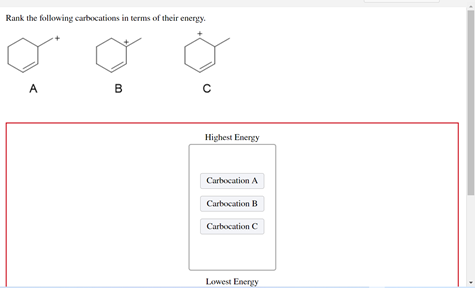 Should their care be paid for by taxes collected from legal reside. Rank the following carbocations in terms of their energy. Rank the following carbocations in order of most stable to least stable.