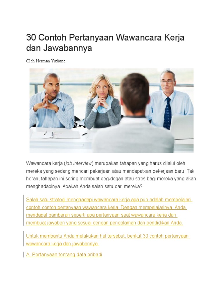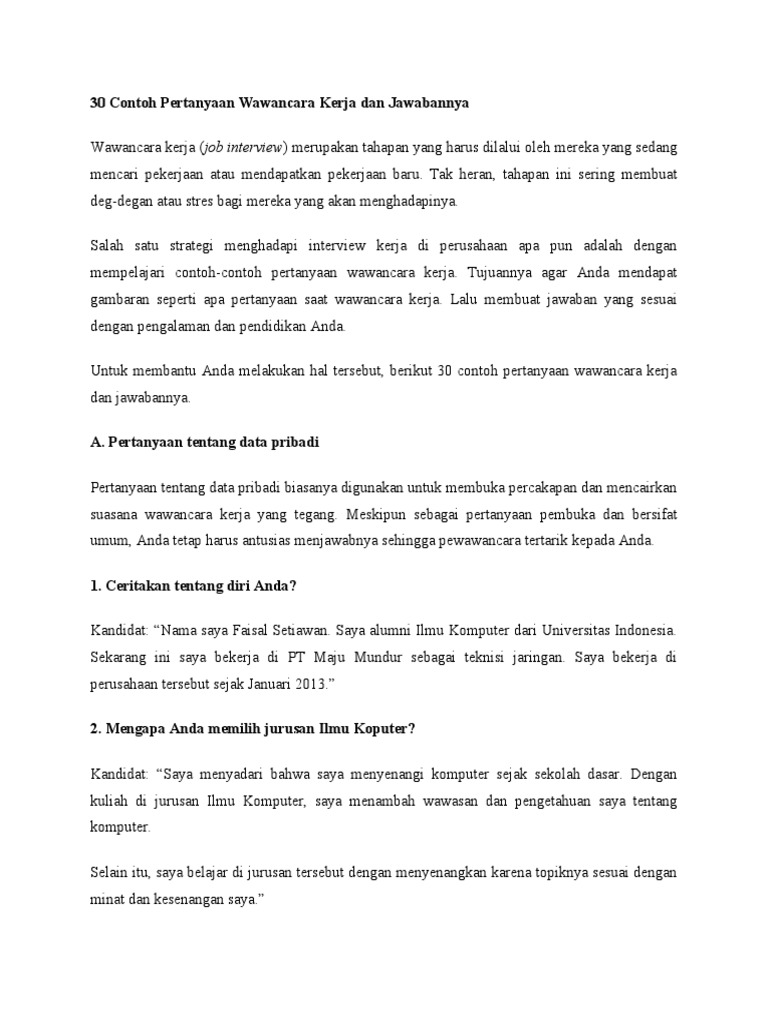 30 Contoh Pertanyaan Wawancara Kerja Dan Jawabannya Pdf